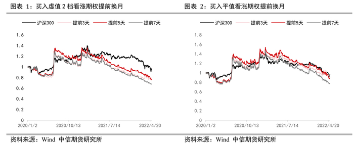 买入单腿看涨期权是最直观的牛市方向策略。买入看涨期权需要初始支付权利金成本,并承担时间价值的自然损耗,因此如果想要测算长期持有单腿看涨期权的策略表现,首先选择合理的到期提前换月天数是非常有必要的。