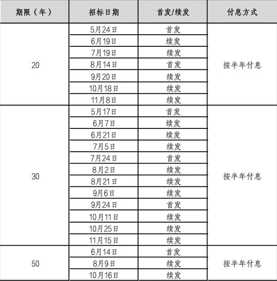 5月13日,财政部发布《2024年一般国债、超长期特别国债发行有关安排》,其中超长期特别国债涉及期限为20年、30年、50年,决定5月17日发行30年超长期特别国债,决定5月24日发行20年超长期特别国债,决定6月14日发行50年超长期特别国债。