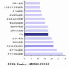 世界主要股票市场市盈率比较