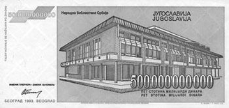 由于极为恶劣的通货膨胀势头根本无法阻止,因此1992年期间前南境内的通货膨胀水平已经达到每周约1520%,到1993年,又上涨到每周约3050%,个别时候一周之内货币甚至可贬值5倍之多。营业时间内,商店售货员每天的一项重要任务就是更换货价标签,最多时一天多达三四次。开始时还另写一张新货签取而代之,由于更换实在过于频繁,售货员干脆就直接在原价格基础上填“0”而已。购买一件东西,不带着一包的钞票恐怕只能空手而归。不得已,1993年下半年又出版发行了面值为5000亿的第纳尔钞票,即1个5后面跟有11个0的超大面额第纳尔开始出现。