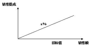 从图2可以看到,提成比例保持不变,因此无论销售人员制定的目标值如何,其销售提成均按照实际完成销售额的a%计提。