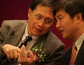 香港特区政府运输署署长黄志光(左)和北京市交通委员会副主任刘小明(右)在会上交流京港两地交通经验