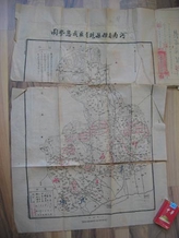 在我的收藏里,还有一册1947年10月由华北解放区民主出版社编绘的《晋冀鲁豫边区分区详解地图》,这册解放区地图集十分罕见,而且内容详细。其中有29幅地图,按太行专署、晋南三角地带、冀南行署、冀鲁豫行署、豫皖苏行署分别以地图和文字,介绍了解放区的行政区划,历史沿革,人口、物产、文教事业等翔实的数据。根据这部图集的介绍,辉县属太行区第五专署,当时的太行专署位于正太路南,平汉路西,白晋路东,黄河以北的太行山脉地区,包括着晋东南、冀西、豫北的广大地区,正副主任为李一清、杜润生。记得前年我曾参加了为杜老的祝寿,年逾九十的杜老兴致勃勃地和我们一起高唱《在太行山上》的情形现在仍历历在目。图集中介绍:"敌投降后,蒋军孙连仲、马法五等由安阳侵入我磁县、邯郸,我举行自卫反击,歼敌两个军共五万人,是为平汉战役。又三八年三月我军于涉县响堂铺伏击敌汽车一百四十辆。"这里说的是在第五专署区域发生过的战斗。图集里还介绍辉县根据地有行政村205个,人口133625人,耕地面积450439亩。