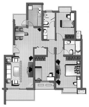 另外,面积再大一些的两房、三房,基本能满足一家三口或两代人的居住要求,体现的是布局开阔,光线充足,南北通风,并且休息与生活动静合理区隔。