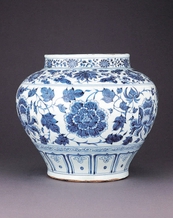 我们现在能知道的重要的元青花瓷器大多数都在欧美、日本和土耳其、伊朗等地博物馆里。而在华辰2006年春拍上有幸征集到的元青花缠枝牡丹纹大罐在国内难得一见,在国际上亦是屈指可数。已知世界范围内公私收藏此类元青花大罐二十余件,国内曾出土三件。能在市场上流通者数件而已。