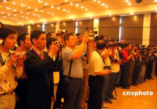 6月15日晚,第十七届哈尔滨国际经济贸易洽谈会俄罗斯商务日项目签约仪式在哈尔滨举行。项目签约仪式吸引了大批新闻记者前来采访。中新社发 王良武 摄 版权声明:凡标注有“cnsphoto”字样的图片版权均属中国新闻网,未经书面授权,不得转载使用。
