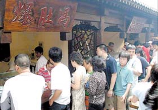 老北京传统小吃入驻什刹海半月时间里,晚上9点半,成了小吃与酒吧在这里欢畅的临界点。如果你晚上9点半刚刚来到这个夜的天堂,那么品尝小吃的念头必定要被打消,因为这里已经关门。“7、8点钟的时候,小吃就已经全卖完了。”“连炒菜也没了。”跑堂的伙计告诉那些慕名而来的食客。