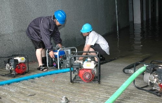 12点30分,输配电工程公司和用电工程公司员工正分别巡视着为雍华府贵园小区通向地下电房的两个大门拦水编织袋和5台抽水机,一直在渗漏水严重的地下看护、巡视的输配电工程公司员工胡翔从黑洞洞的地下电房中冲出来告急:“地下室照明灯熄灭了,有12台排水泵停止工作了”。工程管理专职童兆晖接报,迅速冲进水已涨高到80公分的地下电房,一看,还有10多公分,水就淹到正式在运行的高压柜接电桩头。情急之下,他冷静分析为小区电房电源因潮湿跳闸。因此,把自备水泵的电源由自动切换成手动,然后果断强送电,这时12台水泵又欢唱排水了。水位见落,电房保住了!小区电房电工说,“真是后怕和万分危及哟!”