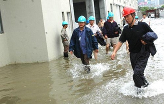 说话之间,电闪雷鸣和瓢泼大雨同至,就在积水增长最快的7至9点钟之间,公司领导已分别出现在变电所、小区抢险保电现场。在文昌西路市领导排涝指挥现场,总经理赵明奇等公司领导在没漆的积水中,当面接受市委书记季建业下达的保电任务。在110千伏双桥变电所,党委书记宋建华一下车就冲到变电所大门口指挥筑坝拦水。在平山变电所当发现水情时,副总经理俞金顺、总工程师丁建中拿起撬棒就撬,将出水口的水泥盖板搬起排水。