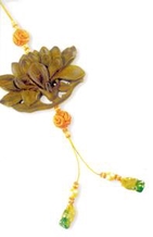 珠链:也许珠链是由朝珠演变而来,珠链带有隆重高贵的气息。现代社会一串翡翠珠链是最能表现女性高贵气质的饰物,也难怪近年来翡翠珠链的价格动辄几百万、几千万,总是位于翡翠饰品的最高位。
