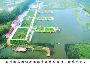 滕州微山湖湿地红荷风景区位于滕州市西北部,滨湖镇境内。风景区总规划面积60平方公里,浅水湖面红荷观赏区达到10万余亩,素有中国“荷都”之称,是华东地区面积最大、生态保存最原始、湿地景观最佳和中国最大的荷花观赏地区。