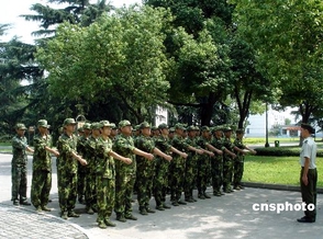 资料图片:8月27日,在苏州大学内2006级新大学生们正在进行军事训练。开学前夕,苏州大学对新入学的大学生进行军事训练和国防知识教育,增强大学生们的国防观念和国家安全意识,并磨炼意志品质。中新社发王建康