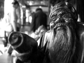 “这是最后一尊孔子木雕了。”清河访木的老板张勇抚着一座40厘米高的孔子木雕说,“檀木手工雕刻,4200元不二价。”这家位于河坊街上的木雕小店光8月份就卖出了两尊价格不菲的孔子雕像。张老板还把几个手掌大小、形态各异的孔子木雕摆在店堂入口最醒目的地方。