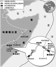因此,对伊斯兰法院委员会心存戒备的埃塞自然选择支持拜多阿的过渡政府。与之相反,曾与埃塞爆发边境冲突的厄立特里亚选择支持教派武装。据新华社