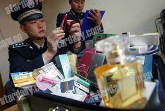 几天前,朝阳区建外城管队员在巡查到光华路时,查获一批假冒名牌化妆品,有香水、面膜、护肤品等不同品牌的化妆品。信报记者 张越/摄
