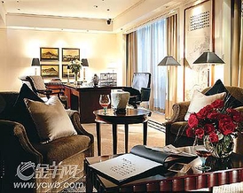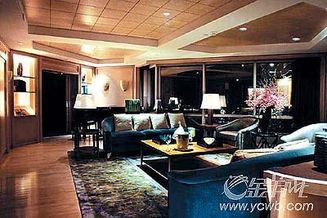 一出电梯,金碧辉煌的装潢会令你眼前一亮,墨绿色的大理石配以亚金壁雕,典雅中透出高贵。在柔软的羊毛地毯上缓步前行,欣赏着走廊墙壁上的中国民间工艺品,不知不觉已步入富豪环球东亚的总统套房。