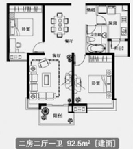 主力户型:93m2两房