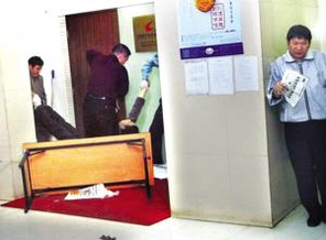 2004年4月30日,中午12时许,一中年男子在洪武路中国银河证券有限责任公司一楼交易大厅的厕所内上吊自杀。