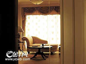 中国套房可谓最阳光的套房。设计者在自然采光方面可谓匠心独运,几乎在每个起居室都设置了视野开阔的玻璃窗。在套房的整体色彩搭配上,设计者也将墙壁、地毯、家具、窗帘、装饰画的风格色调相衬得珠联璧合。