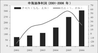 中国石化2006年的净利润增幅要高于2005年。2006年,中国石油和中海油的净利润增幅在放缓,但中国石化在2005年净利润增长22.57%的基础上,2006年净利润增长了28.08%,净利润增幅要高于2005年。通过分析,可以看到2006年中国石化勘探与开发业务在国际原油价格稳步提升的情况下,实现了盈利能力的提升,该项业务所贡献的利润在公司利润总额中的比重已达到50%以上。同时,化工业务、营销与分销业务的盈利能力也在稳步增长。虽然炼油业务出现了亏损,但在国家给予一定财政补贴的情况下,公司炼油业务的亏损幅度大大减小。而中国石油2006年的勘探与生产业务的毛利率出现下降(由2005年的61.71%下降至2006 年的52.18%),是导致公司净利润增幅放缓的主要原因。