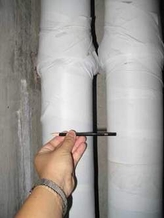 记者在该套房子的跃层主卧室,看到了三根粗大的管子,该业主指着其中两根(见图)对记者说:“这就是楼上住户卫生间的污水管。”同时,指着该卧室楼顶一处有明显修补痕迹的地方,告诉记者这就是楼上卫生间所在位置,也正是因为楼上卫生间在装修时漏水渗到楼下,他才发现自己家主卧的上方是楼上的卫生间。