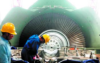 昨日,位于望城县铜官镇花果村的华电长沙电厂一片繁忙,记者在13.7米高的发电机组安装平台上看到,长约38米的1号发电机组已吊装到位。华电长沙电厂距离市区约37公里,于2005年12月开工建设,由华电集团公司投资130亿元兴建,规划装机总容量为320万千瓦,其中第一期工程装机容量120万千瓦,配套两台60万千瓦燃煤火力发电机组,第二期规划装机容量200万千瓦,配套两台100万千瓦燃煤火力发电机组。