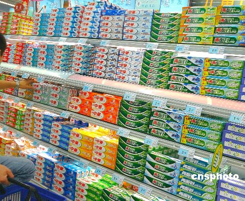 2007年7月4日获悉,国家认监委及卫生部近日在全国口腔卫生工作研讨会上指出,卫生部正在会同有关部门制定《口腔保健品的认证管理办法》制度和标准,认监委将制定一套严格的认证和评价程序推动此项工作,中国牙膏行业全面“洗牌”将不可避免。中新社发 井韦 摄