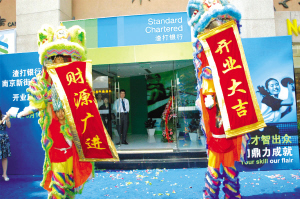 昨日,渣打银行南京新街口支行开业。与以往外资银行网点都是“隐藏”在高档写字楼内相比,这家外资银行的营业网点有些与众不同——位于中心大酒店的沿街铺面,是南京第一家“地铺式”的外资银行。记者进行了现场探访,尽管渣打银行南京分行暂未开办零售业务,目前仍为高端理财,但其品牌形象与口碑已渐为南京人熟悉。记者就普通人关心的外资银行人民币零售业务等热点话题采访了渣打银行(中国)有限公司个人银行总裁叶杨诗明女士。