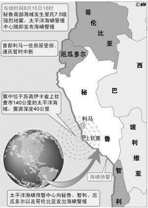 8月15日,秘鲁南部晚发生里氏7.5级地震。(据新华社电)
