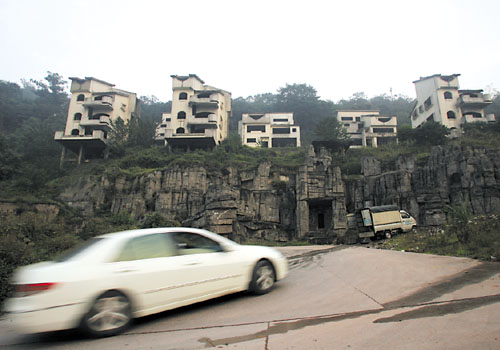 昨日,沙坪坝平顶山,圣泉花园烂尾别墅群4710万被拍卖 记者 欧阳祖兵 摄