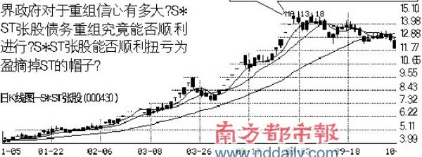 大限将至,S*ST张股能否生还尚未可知。而就在9月初,市场上开始流传北大青鸟将代替张家界经投集团重组S*ST张股,二级市场上,自8月9日复牌后一路上扬几近翻番的股票价格开始回落,从15.05元跌至10.99元。股民的心中画满了问号:北大青鸟是否真的要入主S*ST张股?张家界政府对于重组信心有多大?S*ST张股债务重组究竟能否顺利进行?S*ST张股能否顺利扭亏为盈摘掉ST的帽子?