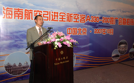 在推介会上,海南航空股份有限公司总裁助理、市场销售部总经理邓戬表示,海航此次新引进的空客A330-200型飞机将使用全新的海南航空涂装,大鹏金翅鸟幻化而成的图案代表着海航的蓬勃生机。据他介绍,此次海航引进的空客A330-200型飞机的总共座位数为222个,与330-200系飞机的293个座位总数相比,减少了71个座位,阔宽了商务舱的布局。36个座位的商务舱,其座位间距达到72英寸,称得上是目前世界上最宽敞的商务舱座位间距,具有更多的私密性和舒适性。由欧洲某一知名品牌设计的180度半埋式座椅、可调节的阅读灯、可保持商务通话的机载电话,以及海航在330上率先采用的触摸式10.6寸个人娱乐系统电视显示屏和海航独创的“your travel”3D电子地图,令旅客在飞行时随时随地掌握飞行路线。“海航打造更为完美的商务舱,将更舒适的飞机投入到市场上去,更好地为广大旅客服务。”