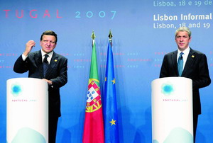 10月19日凌晨,欧盟轮值主席、葡萄牙总理苏格拉底向世界宣布,在里斯本召开的欧盟非正式首脑会议上,“欧盟新条约”获得通过。