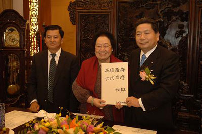 中川秀直先生还当场题辞:“共植腊梅世代友好”。