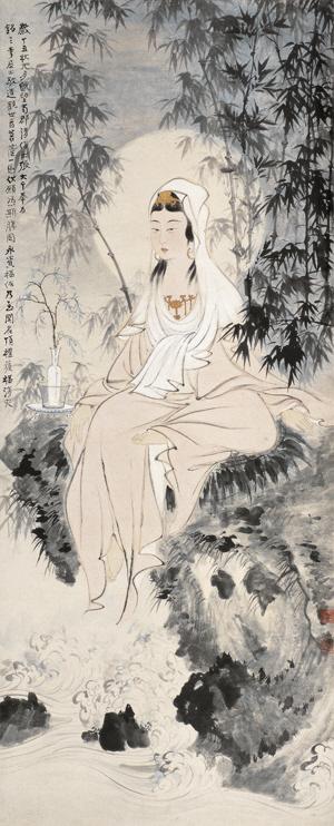 艺术创新力:张大千在绘画题材比较广泛,涉及人物、山水、花鸟、鱼虫、走兽,工笔等,张大千青、中年作品以仿古为主,他临仿石涛和八大的作品几近乱真。1938年左右,他游历黄山、华山、金刚山、雁荡山、泰山、罗俘山、阳朔山、剑阁、峨眉山等名山胜水,画了一大批山水花卉,共有1000余幅。1940年后用了两年半的时间,对于我国敦煌洞窟,逐个整理编号,进行临摹,丰富了绘画技法。但也在临摹期间为了看清隐藏在里面的早期壁画,任意将表面的后期壁画剥去的做法也受到后人的质疑。晚年时期,张大千自创泼彩画法,在保持了中国画的传统特色基础上,创造出一种半抽象墨彩交辉的意境。