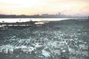 远处是迷人的早晨霞光,靠近镜头的江边是大片的污染物,这样的强烈反差,给我们的视觉以强烈的冲击——为了免受这样的“冲击”,“晨光”这样的企业和这些企业的员工正在做出自己的努力——明天的晨光,一定会更加迷人。