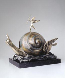 《蜗牛与天使》中,达利描绘了一个骑着巨大蜗牛的天使,在后来达利对此作品的解释中,他觉得蜗牛倒更像是弗洛伊德的头,而弗洛伊德的睿智似乎从被天使抚摩过脑袋开始。弗洛伊德正是达利的精神之父,达利的“梦”是对弗洛伊德潜意识的描绘。事实上,达利只对两个人表示过敬意,一个是弗洛伊德,另一个则是毕加索。当然,这并不妨碍达利把他们幻化为蜗牛和山羊。而在《超现实主义勇士》中,一个罗马斗士的身体中间竟开了天窗,对身体的“异样摧残”是达利模糊对象的主要手段之一,这些手段包括把脸像风筝一样挂起来、从身体正中抽出抽屉、用梯子把头脚倒置……