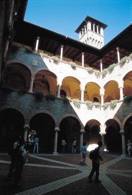 再次上车,继续向下。格朗德城堡,地势最低、兴建最早的一座。专家以为,圣米歇尔山(Monte San Michele)上,公元前即存工事雏形,及至13世纪圣哥达山口开通、15世纪米兰激战科莫,格朗德城堡因时而生,宏伟扩张,名垂欧洲军事青史。