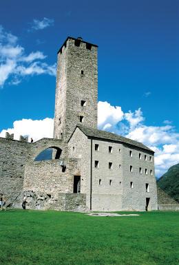 城堡绝非因美而生——贝林佐纳地处阿尔卑斯南部咽喉地带,狭长山谷之内,集聚数条南北通路,兵家必争,铁火难熄,中世纪起,贝林佐纳倚踞者便凭借一线自山脉东翼斜至山谷的岩脊,陆续建起格朗德城堡(Castel Grande)、蒙特贝罗城堡(Castello di Montebello)及萨索·科尔巴洛城堡(Castello di Sasso Corbaro),试图以错落地势、迭出堡垒扼守意大利之北纷争要道。时至今日,贝林佐纳三座城堡依然维系出固若金汤的仪态,堪称瑞士南部乃至整个阿尔卑斯山区中世纪军事建筑唯一尚存的典范,已于2000年被联合国教科文组织列入《世界遗产名录》。