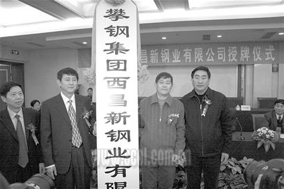 昨日,攀钢集团在西昌举行攀钢集团西昌新钢业有限公司授牌仪式,这标志着攀钢与西昌新钢业的重组圆满成功。重组后,攀钢将拥有西昌新钢业66%股权,并将享受到凉山州资源优先配置权,双方将联手打造攀钢在西昌的钒钛新基地。此前,攀钢集团先后重组了成都无缝钢管厂、成都钢铁厂、四川长城特殊钢集团公司。
