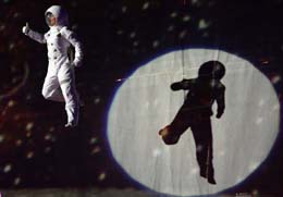 一名艺术家在英国利物浦的回声体育馆参加“欧洲文化之都”第二场开幕晚会——“利物浦音乐剧”的演出。