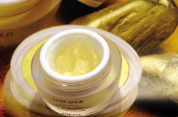 黄金拥有许多传奇的品质,珍奇、亮泽、密度精纯,自古以来被人尊崇为能量之源。《本草纲目》中记载,黄金“镇精神,坚骨髓,通利五脏”;3000年前的埃及艳后也常戴黄金面具,以金箔覆面,求净化身体和灵魂。现代人把黄金与高科技结合运用于护肤品,依然只是小步趋前,毕竟金属与皮肤的贴和程度不是每个人都能达到一致。至于那些吹嘘得天花乱坠的“金丝植入肌肤”或“黄金SPA面膜”,还是观望为妙。