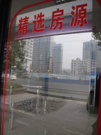 一家关门后的房产中介公司门口,往日挂满房源广告的玻璃窗变得空空荡荡。