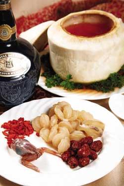 ■推荐:华府天成开在大厦里,却装饰成老北京四合院,主营粤菜。虽然翅参鲍肚是粤菜的看家菜,但是这里最大的特色要算是用哈什蚂做的菜了,早先是宫廷贡品。满汉全席的菜品,许多已久不得见,比如“清蒸哈什蚂”。
