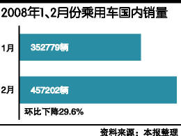 此前,业内专家纷纷预测2月份的乘用车市场应该比较理想,原因是受到严重的气象灾害影响,使很多本该在1月份交付销售的汽车推迟到2月份。但由于国际市场每桶石油价格超过100美元(约合每吨原油5000元人民币),不少人预期国内汽油会出现大幅度涨价,因此推迟或取消了购买打算。另外,较高的CPI 及市场预期的3月份降价高潮将来临,使一批购买者推迟购买。与此同时,有关部门提升排放要求导致销售短期滑坡对汽车整体市场的影响也不能忽视。因此,2月份乘用车市场的终端销售出现了较大幅度的减少。