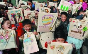 小朋友们要把自己创作的环保布袋送给妈妈。
