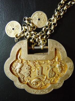 民国 长命富贵银鎏金挂锁