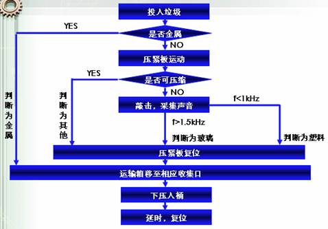 【NO】→敲击模块工作→分类判断模块进行声音信号判断→分类执行模块工作→分类完成
