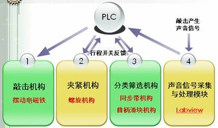 几大模块之间信号传递方式如图4所示,采用PLC进行控制。