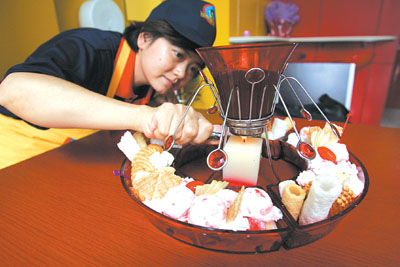 重庆若干年前也曾经出现过“炒冰”这种新奇的冷饮,但由于季节性的因素以及经营者的不坚持,造成了快速的火爆后,逐渐淡出了市场。“对于这种新奇事物,消费者接受需要一个过程,经营者必须经历从亏本到保本再盈利这个过程”,杨小姐表示,冰淇淋产品的价格从3元~50元不等,每样产品的毛利在120%左右,要在开业之初保持赢利有很大的难度。而且对于这种新鲜事物,要想赢利必须做到坚持。因此,作为一个新的项目,需要时间来培育市场,所以经营者最好要有打持久战的准备。